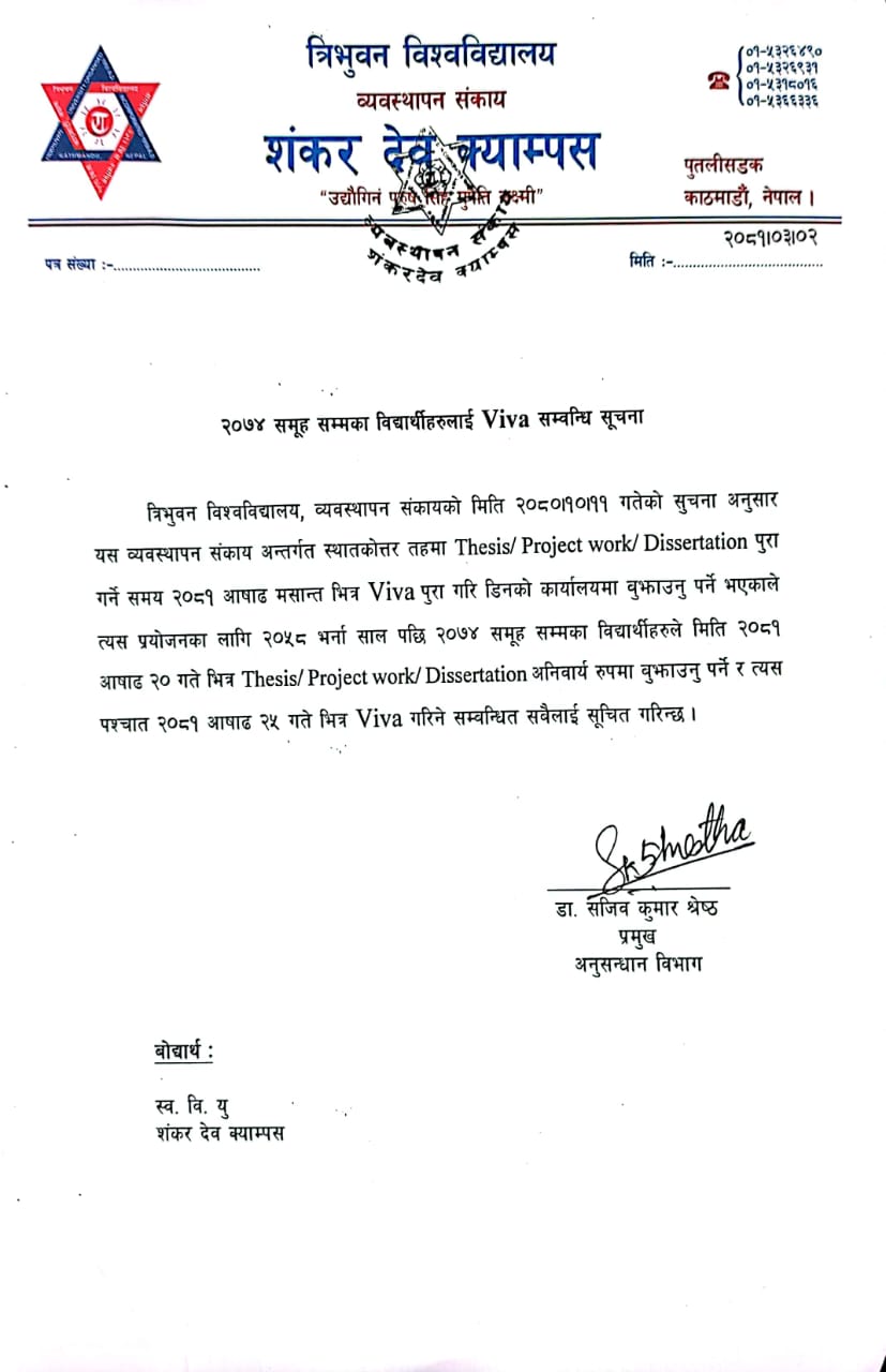 २०७४ समूह सम्मका विद्यार्थीहरुलाई Viva सम्वन्धि सूचना