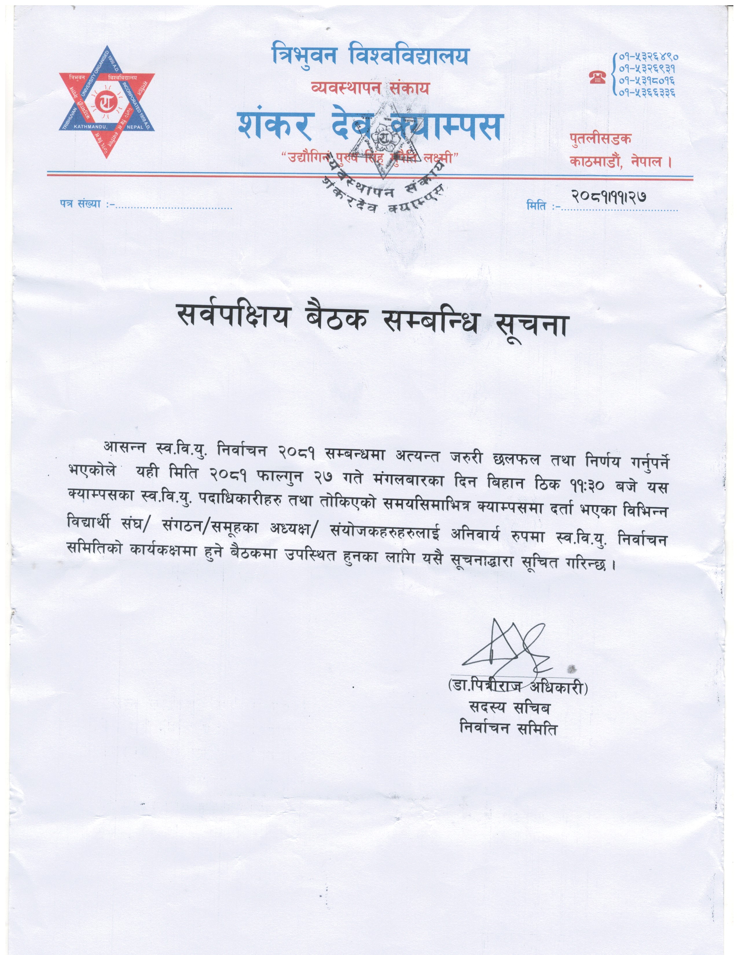 सर्वपक्षिय बैठक सम्बन्धि सूचना
