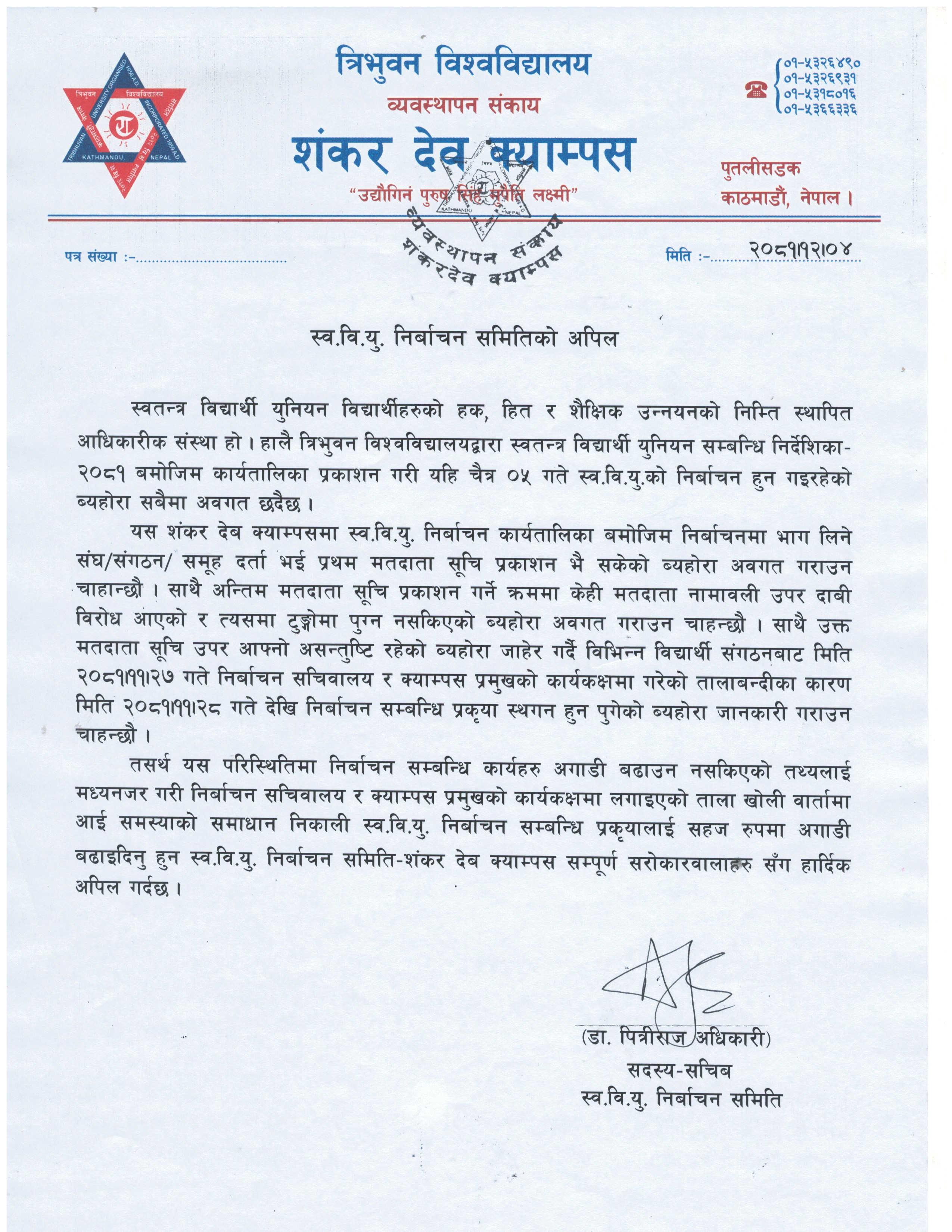 स्व.वि.यु. निर्वाचन समितिकाे अपिल