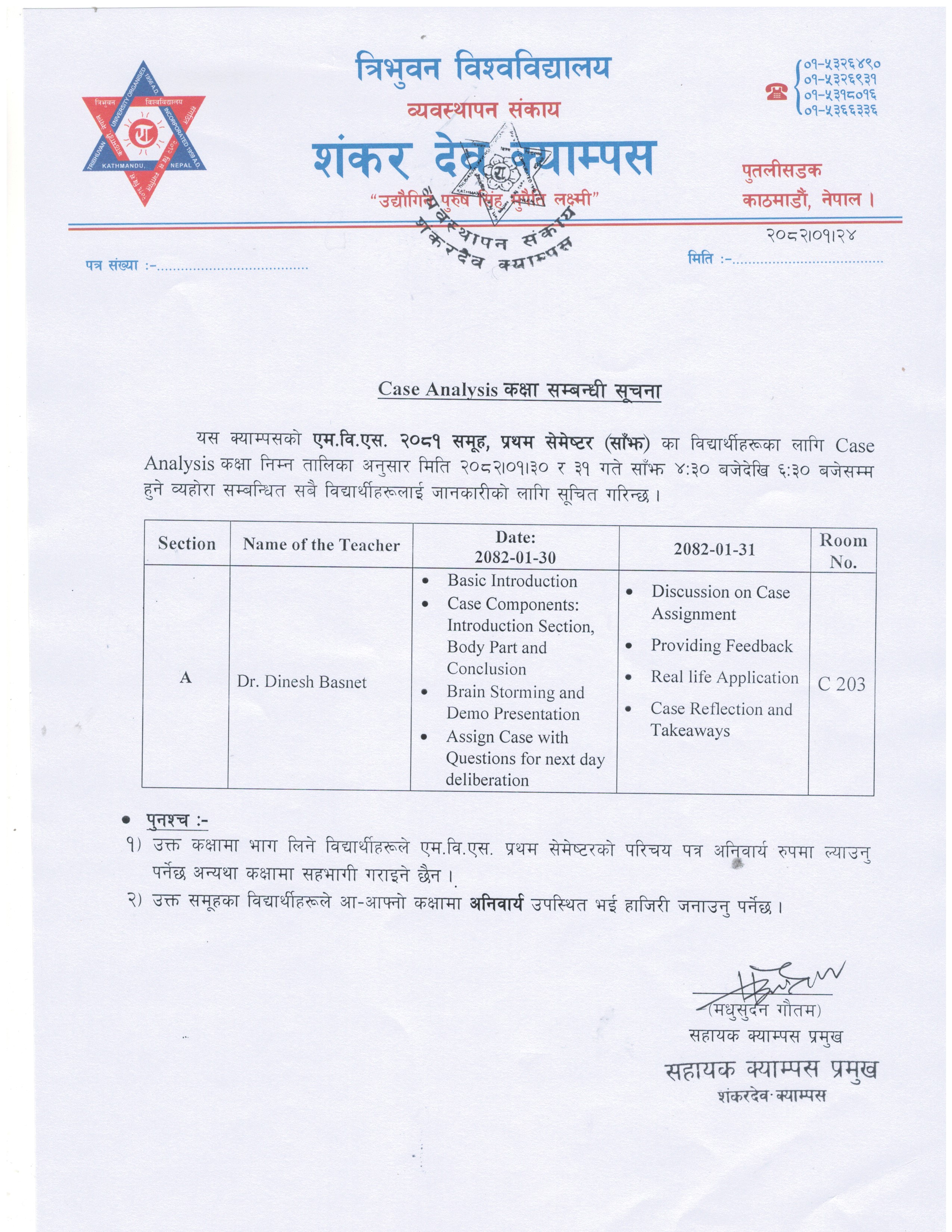 Case Analysis कक्षा सम्बन्धी सूचना 2
