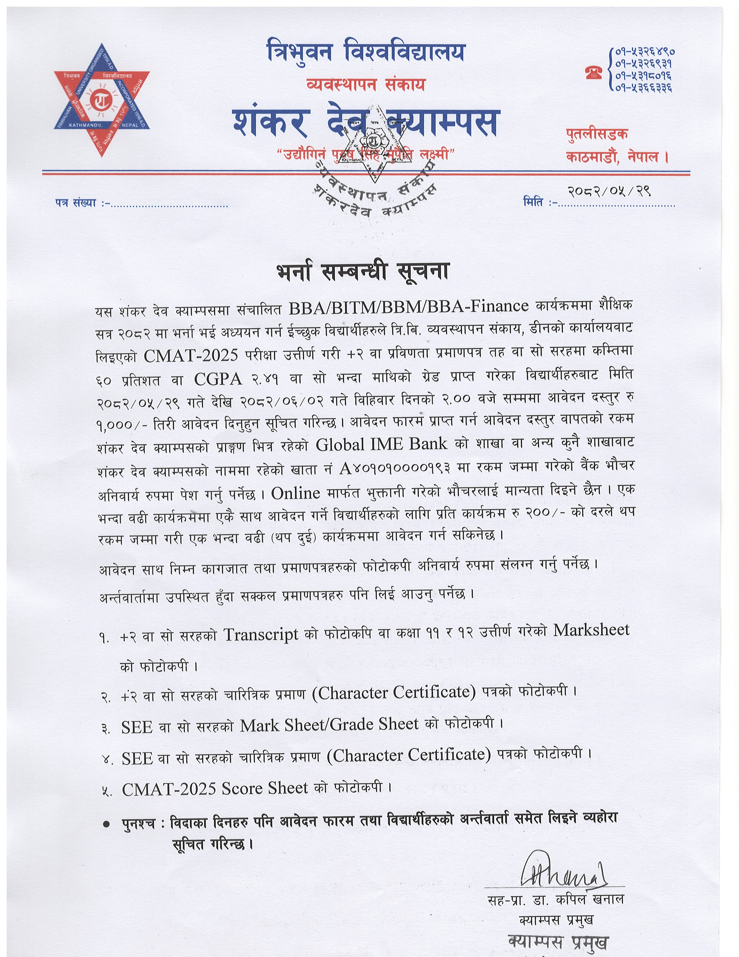 Admission Notice for BBA/BITM/BBA-F/BBM